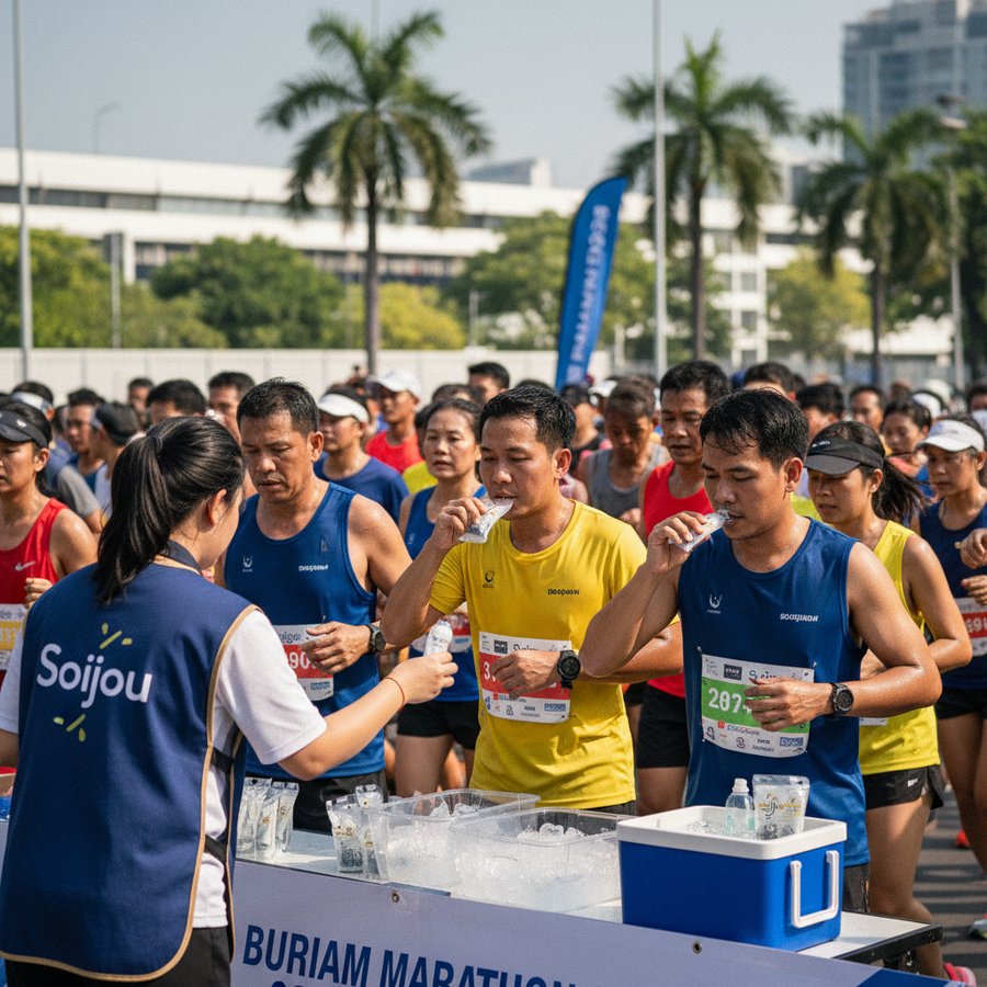 ブリーラムマラソン2026: 走行中にソイジューを配布
