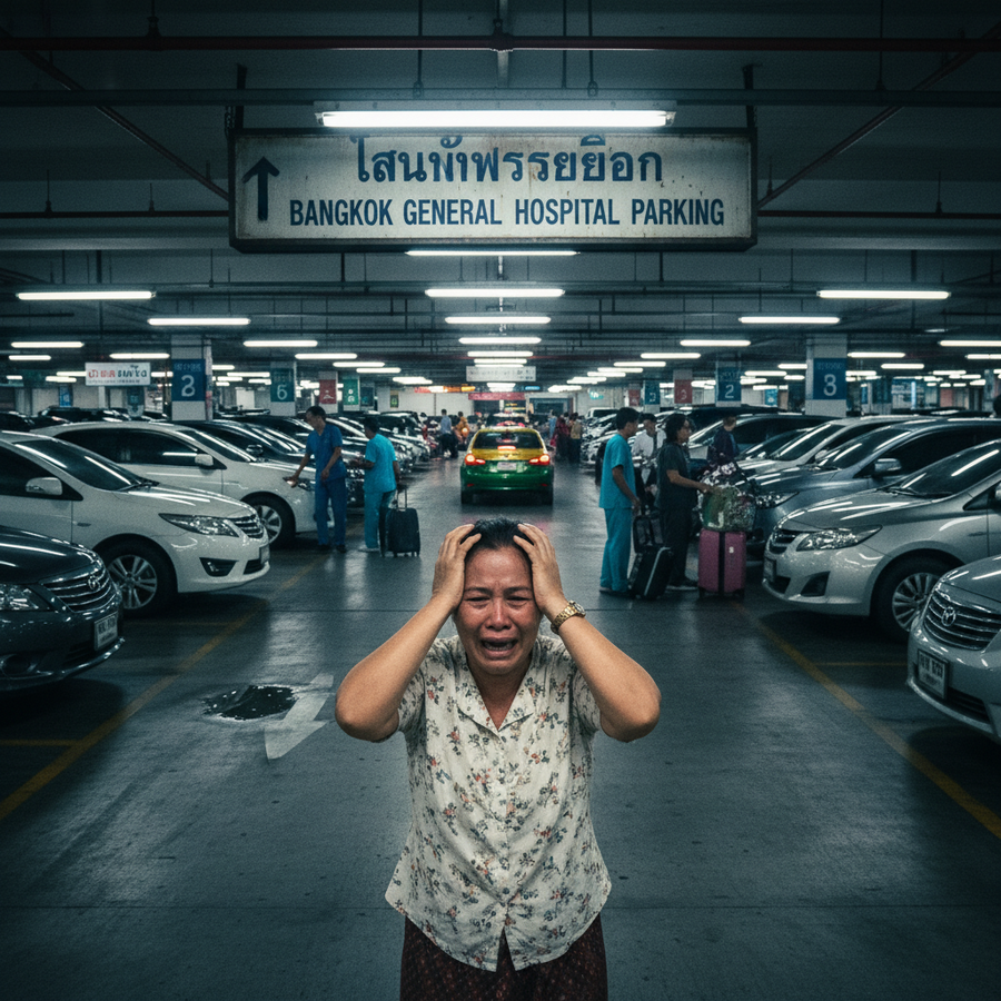 2026年1月26日、タイのパヤオ県にある病院の駐車場で、中年の女性が車を見失い、パニックに陥って泣き崩れる出来事がありました。女性は自分の車が盗まれたと誤解していました。