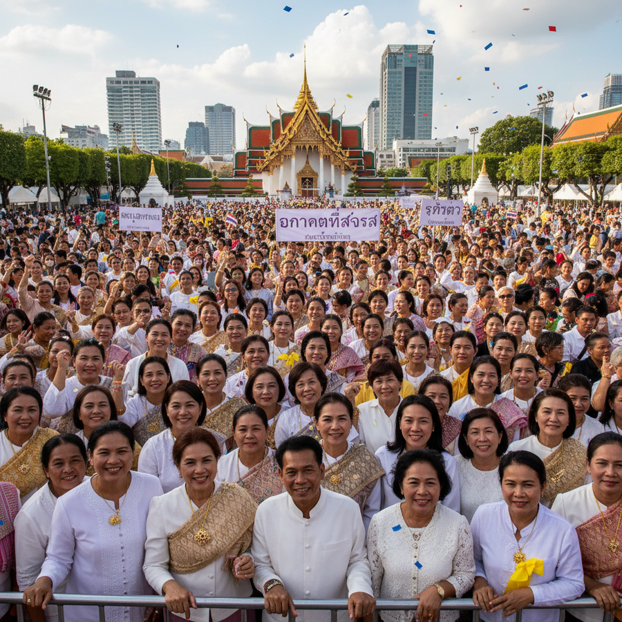 2026年1月26日夜、タイ深南部パッタニー県マヨー郡サコー・ボン地区のラッサミー・サターパナー学校で、プラチャーチャート党が選挙戦最終局面となる大規模な集会を開催しました。2月8日の投票日を前に、南部国境県では選挙活動が活発化しており、この集会には2万人を超える大勢の有権者が詰めかけました。