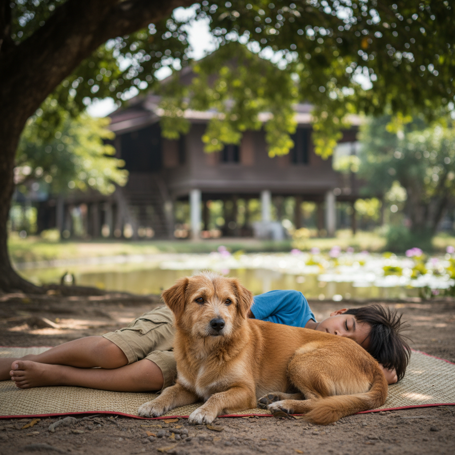 - 少年のそばには、3日間にわたり寄り添い続けた一匹の犬がいました。