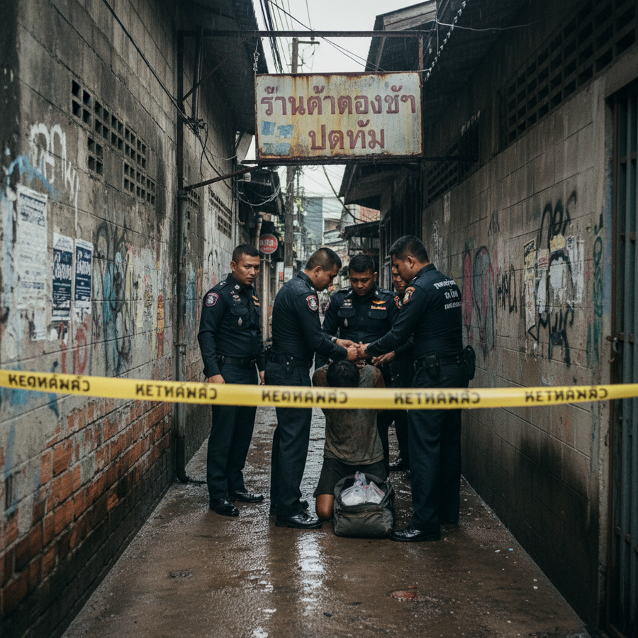 2026年2月15日、首都圏警察は、サムットプラカン県パクナム地域で活動する麻薬組織「アジャーン・ビー」の主要販売員であるナイ・シアン容疑者(32歳)を逮捕したと発表しました。逮捕は2月13日午前6時35分頃、サムットプラカン県ムアン郡テーパラック区ソイ・ティップワン3の入り口付近で行われました。