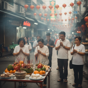 - この儀式では、国王と王妃が蝋燭や線香を灯し、敬意を表すために金銀の紙を燃やしました。
