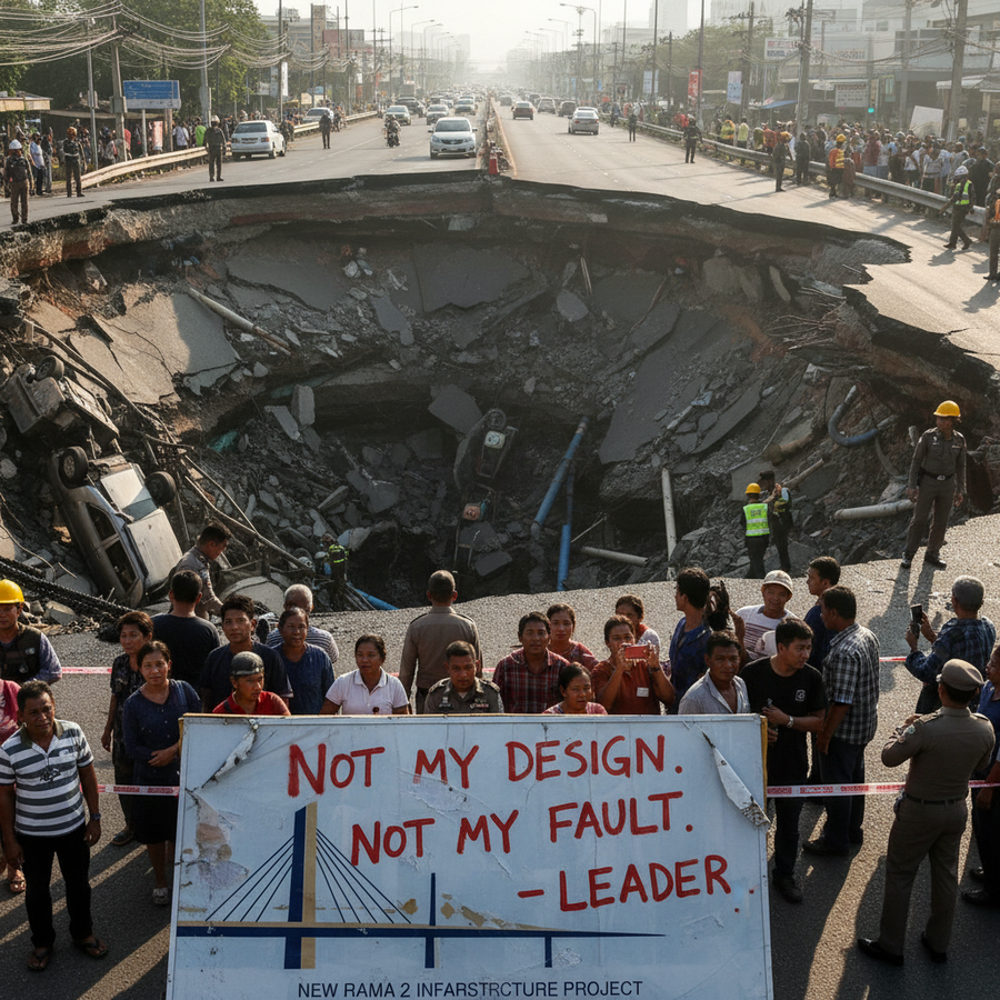 タイのアヌティン・チャーンウィーラプーン首相兼内務大臣は、2026年1月17日朝にバンコク方面行きのラーマ2世通りで発生した道路陥没事故について、設計や工法の問題ではなく、水道管の破裂と作業員の過失が原因であるとの見解を明らかにしました。