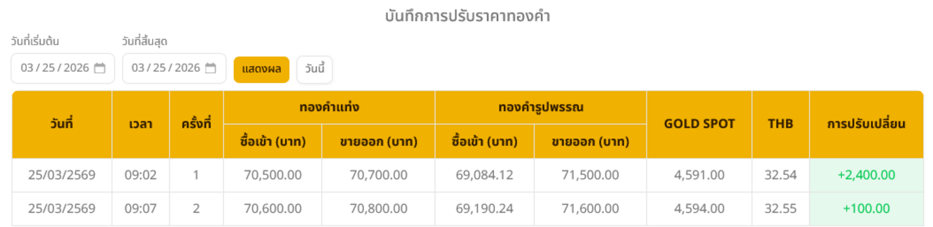 2026年3月25日、タイの金価格が大幅に高騰し、1バーツあたり71,400バーツ(約35.7万円)に達しました。この急激な上昇は、金融市場における金の価値への関心の高まりを示しています。Prachachat Business(プラチャーチャート・ビジネス)が報じたところによると、前日終値と比較して2,300バーツ(約11,500円)の上昇を記録しています。