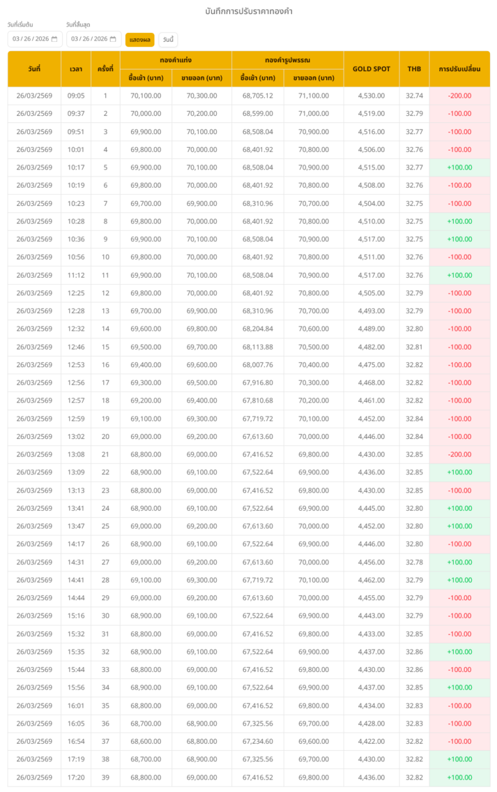 - 本日(2026年3月26日)、タイ国内の金価格は前日比で1,500バーツ(約7,500円)の下落を記録しました。