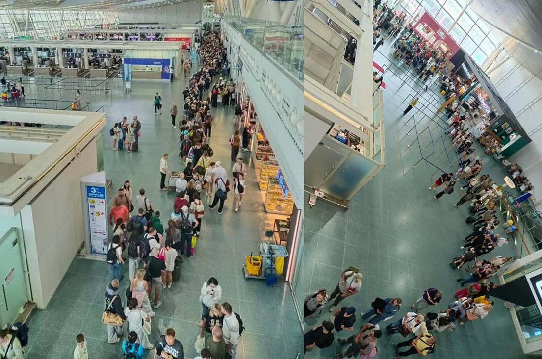 2026年3月28日、プーケット県からの報道によると、オンライン上で「プーケット情報センター(Phuket Info Center)」のFacebookページに投稿された画像が広く共有されています。この画像には、プーケット国際空港の出国審査場に大量の観光客が長い列を作っている様子が写されており、大きな議論を呼んでいます。