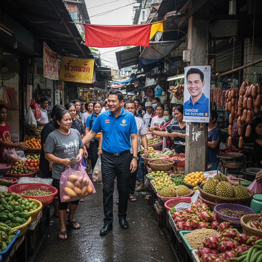 2026年1月19日午後4時、プアタイ党の首相候補であるヨッサチャナン・ウォンスワット氏は、ノンタブリー県のターナム・ノンタブリー市場を訪れました。彼には、党副党首で比例代表候補のポンガウィン・ジュンルンルアンキット氏、ジャックラポン・セーンマニー氏、そしてノンタブリー市市長であり地元プアタイ党の主要リーダーであるソムヌック・タナデチャクン氏が同行しました。