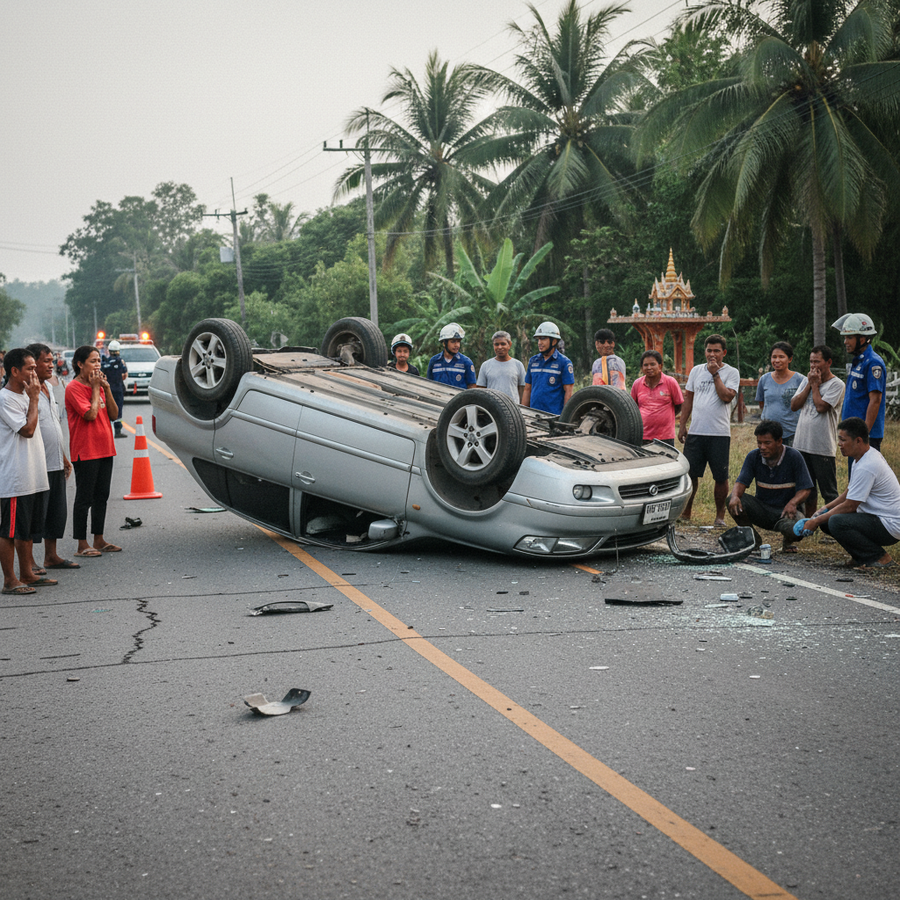- 2026年1月24日未明、ナコンラチャシーマ県でピックアップトラックが横転する事故が発生しました。
