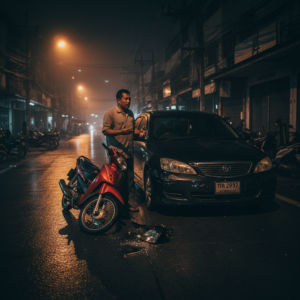 ※この記事のメイン画像はAIによって生成されたイメージです。 この記事の要約 2026年1月18日、チョンブリー県サッタヒープ郡の幹線道路でバイクと車の衝突事故が発生しました。 街灯の故障により道路が真っ暗だったため、バ […]